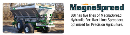 Our MagnaSpread 12' Tandem Axle Hydraulic Spreader is perfect for Fertilizer or Lime Applications - Distribution of Granular Fertilizer or Lime - BBI Binary Manifold Equipped - Option Rich - Customized for your specific application - Precision Fertilizer, Lime and Organics Spreader - Medium Capacity - Variety of Applications - PTO or Hydraulic Powered Driven Spinners - Spreads Fertilizer in 80' PLUS swaths!